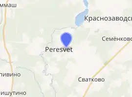 Peresvet (Russian: Пересве́т) is a town in Sergiyevo-Posadsky District of Moscow Oblast, Russia, located on the Kunya River (Dubna's tributary) 90 kilometers (56 mi) northeast of Moscow and 17 kilometers (11 mi) north of Sergiyev Posad, the administrative center of the district. Population: 14,147 (2010 Census);[2] 14,719 (2002 Census).[7]