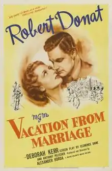 Perfect Strangers (United States title: Vacation from Marriage), is a 1945 British drama film made by London Films. It stars Robert Donat and Deborah Kerr as a married couple whose relationship is shaken by their service in the Second World War. The supporting cast includes Glynis Johns, Ann Todd and Roland Culver. It was produced and directed by Alexander Korda from a screenplay by Clemence Dane and Anthony Pelissier based on a story by Clemence Dane. Dane won the Academy Award for Best Story. The music score was by Clifton Parker and the cinematography by Georges Périnal.[1]