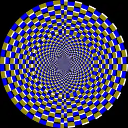 Rotating snakes is an optical illusion developed by Professor Akiyoshi Kitaoka in 2003.[1] A type of peripheral drift illusion, the "snakes" consist of several bands of color which resemble coiled serpents. Although the image is static, the snakes appear to be moving in circles. The speed of perceived motion depends on the frequency of microsaccadic eye movements (Alexander & Martinez-Conde, 2019).