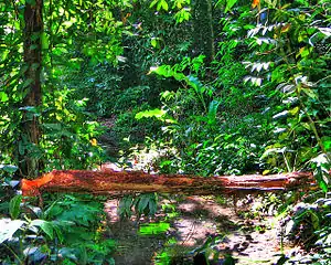 The four-tiered evergreen Atlantic moist forests are the predominant vegetation type.