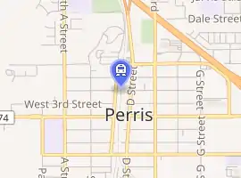 Perris–Downtown (formerly Downtown Perris) is a train station in Perris, California, that opened on June 6, 2016, along with the Perris Valley Line extension of the Metrolink commuter rail system.[4][5] It is located near the Perris Depot.[6]