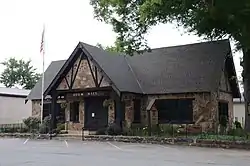 The Perryville American Legion Building is a historic fraternal meeting hall at Plum and Main Streets in Perryville, Arkansas. It is a single story masonry building with Rustic and Tudor styling. It has a steeply pitched gable roof, with a projecting gabled entry vestibule facing the street. The gable ends are decorated with half-timbering, and the roof eaves show exposed rafter ends in the Craftsman style. The hall was built in 1935, and is the community's best example of the Rustic style.[2]