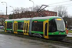 PESA Tramicus 121N is a tram produced by the Polish company PESA in Bydgoszcz. It has a modern, fully low-floor design. The 121N trams are currently used only in Elbląg and are operated by ZKM Elbląg. Currently 6 vehicles of this type are in service.
