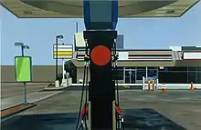 In 1996, Cain turned his attention from cars to Los Angeles gas stations and convenience stores a year before his death. These landscapes are void of any human presence; Cain even erased logos and type from the numerous signs which inhabit such places. The face that greets Los Angeles car culture is eerily blank, and what can be understood as foliage is rendered in micro-faceted and hallucinogenic masses of green paint. The gas stations are spare in painterly incident, but redolent of narrative possibilities. When the Los Angeles paintings had their posthumous premier at the Matthew Marks Gallery in 1997, critics praised them for challenging the conventional wisdom that painting’s capacity to express genuine emotion was long gone. Peter Schjeldahl lamented, “I had trouble with Cain’s car pictures while being enchanted by the promise of his painterly gifts and ambition. Now we see the beginning of the promise’s fulfillment in the same instant as its end: an exceptional talent nipped in mid-blossoming, just short of full bloom. ”[2]