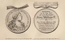 Also in 1829, Jones embarked on a tour of the northern United States with Reverend William Case and several Indian converts to raise money for the Methodist missions in Upper Canada.[15] The tour raised £600, thirty percent of the Methodist Church's annual expenditures across British North America.[39] After his return to Upper Canada, the year's annual Methodist conference named Jones "A Missionary to the Indian Tribes" on Case's urging.[21] The 1830 conference gave him the same appointment. He was also ordained as a deacon then.[40] Upper Canada's Methodists were in desperate need of money by 1831; that spring the church had been unable to pay all the salaries owed.[41] To raise money for the church, Jones travelled with George Ryerson to the United Kingdom that spring where he gave more than sixty sermons and one hundred speeches which raised more than £1000. These sermons were also held with Jones in Indian attire, which combined with his Indian name created curiosity and filled the halls, with four or five thousand attendees at his sermon for the London Missionary Society's anniversary.[42] Jones met with a number of prominent Englishmen, including James Cowles Prichard, who treated him when he fell ill in June 1831, as well as Methodist leaders such as Adam Clarke, Hannah More and Richard Watson.[43] This tour created significant public interest, and Jones met with King William IV on April 5, 1832, shortly before his return to Upper Canada.