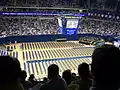 The early minutes of a game against number one ranked UConn in 2009. A portion of the Oakland Zoo can be seen at the bottom. Pitt won the nationally televised game 70–60.