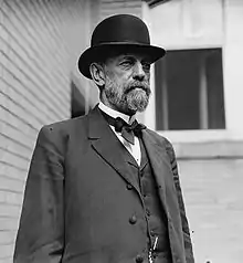 In 1889, Thomas and Jenny McMartin had the home built for their family at the corner of 8th Street and North Duluth Avenue. Constructed in the Queen Anne style, the house is a red brick and Sioux quartzite building with two and a half stories.[1][2] In 1911, the house passed to Richard Franklin Pettigrew, who bought it for $12,000. Pettigrew had moved to Sioux Falls in 1869, was an early member of the Dakota Territory House of Representatives, and became one of the first United States Senators from South Dakota upon its statehood in 1889. Outside of government, Pettigrew was a collector and amateur archaeologist, and travelled the world extensively. Throughout his life, he collected various items for a personal museum, later opening his collection to public viewing in 1925 in a gallery at the back of the house. Upon Pettigrew's death at his home on October 5, 1926,[3] he willed the property to the city, along with his artifact collection.[1] The city extended the building in 1934 to accommodate the collections. Curators of the museum inhabited the house with their families over the years.[4]