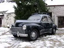 The 4-door saloon was the major seller, but from 1950 a commodious 4-door version (Commerciale) and a 6-seat (Familiale), with three rows of seats, were also offered on a wheelbase lengthened by 20 cm (7.9 in) to 278 cm (109 in).[3] By taking the trouble to extend the wheelbase for the estate and family versions, the company set a pattern which they would follow with several succeeding generations of large family Peugeot estates such as the 404 and 504.