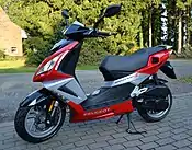 The Speedfight 2 was introduced in 2001 after the success of the original model. The designs of the front panel, rear panel and light are different on the two models. The Speedfight 2 is available in air-cooled and liquid-cooled variants. The model was also equipped with anti-dive front suspension[1]