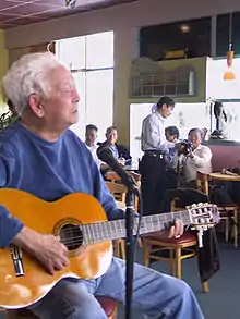 After the fall of Saigon, Phạm Duy and his family moved to the United States where he settled in Midway City, California.[12] His music was banned in Vietnam between 1975 and 2005. However, his music continued to be performed and widely known both inside and outside Vietnam.[2] He pursued a minstrel's life and appeared regularly all over the world to sing his new refugees' songs (tị nạn ca) and prisoners' songs (ngục ca), and songs derived from the poems of his friend Hoàng Cầm (which he termed Hoàng Cầm ca).