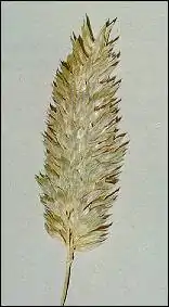It is native to the southern United States,[1] and it can be found as a naturalized species along the west coast of the United States,[2] as well as northern Mexico and parts of Europe and Australia. It is most often found in moist to wet habitats, such as marshy meadows, and it can thrive in disturbed areas. It is an annual grass reaching a maximum height between 1 and 1.5 m (3.3 and 4.9 ft). The hairy inflorescence is roughly oval in shape and up to 7 cm (2.8 in) long by 2 cm (0.79 in) wide.