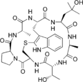 The phallotoxins consist of at least seven compounds, all of which are bicyclic heptapeptides (seven amino acids), isolated from the death cap mushroom (Amanita phalloides). They differ from the closely related amatoxins by being one residue smaller, both in the final product and the precursor protein.[1]