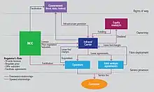 Phase3 was licensed in 2003, as a national long distance operator and in 2006 entered into a major strategic Public–private partnershipto access national power grid lines to carry traffic for telecommunication operators.[7] Phase3 and Alheri Engineering were the two firms that beat 7 companies, including Siemens Nigeria, Suburban Telecom, NTL, Optic Networks Limited and Backbone Company of Nigeria; to secure the deal.[8] Such an access to a telecommunications enabled infrastructure was to make it possible for both companies (with Phase3 planned layout pegged for Nigeria's north and Alheri Engineering's for west) to build out reliable fiber-optic backbone networks, to ensure faster broadband penetration and nationwide connectivity in the Nigeria unserved and under-served communities.[9] Thus, making it possible for mobile operators, internet service providers, businesses, government agencies and international organisations to take advantage of the huge bandwidth that is centrally managed.[10] And, in March 2006, Phase3 finalized a 15 Years Agreement for the Design, Build, Finance, Operate (DBFO) Telecommunications Infrastructure model for the Western part of Nigeria".[11] This largely positioned Phase3 for expansive growth; the operational viability to run layered range of telecoms, and valued-added services as well as considerable access to foreign investment. More so, the company's capacity to offer non-discriminatory and non-competitive services to mobile operators became its distinctive factor as an open access network with unique right of way (RoW).[12]