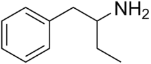 Phenylisobutylamine, also known as α-ethylphenethylamine, Butanphenamine, B or AEPEA,[1] is a stimulant drug of the phenethylamine class. It is a higher homologue of amphetamine, differing from amphetamine's molecular structure only by the substitution of the methyl group at the alpha position of the side chain with an ethyl group. Compared to amphetamine, phenylisobutylamine has strongly reduced dopaminergic effects, and instead acts as a selective norepinephrine releasing agent. The dextroisomer of phenylisobutylamine partially substitutes for dextroamphetamine in rats.[1]