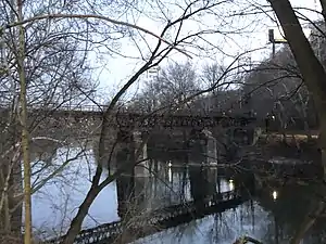 The Philadelphia & Reading Railroad Mule Bridge is a bridge spanning the Schulykill River at the foot of Shurs Lane in Philadelphia, Philadelphia County, Pennsylvania. The bridge is significant for being one of the oldest surviving wrought iron lattice truss bridges.[1]