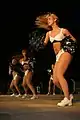 The Philadelphia Eagles Cheerleaders are the cheerleading squad of the Philadelphia Eagles, who plays in the NFL. The squad features 38 women.[1] The squad debuted in 1948 as the Eaglettes, and became the Liberty Belles in the 1970s, and became the Philadelphia Eagles Cheerleaders in the 1980s.[2] In April, the squad holds annual auditions at the Kimmel Center, with the final auditions being aired on PhiladelphiaEagles.com.[3][4] The squad, was unique in that it released a swimsuit calendar, but the Eagles Cheerleaders have also released it on Android, as well as iOS for $1.99.[5][6] Today, the Eagles Cheerleaders releases a booklet about the squad. The squad's director, Barbara Zaun, was a titleholder for Miss USA and Miss America, and also coordinated the Eagles Cheerleaders for Super Bowl XXXIX, the Pro Football Hall of Fame Game, as well as various photo shoots.[7] The squad also makes off-field appearances.[8] The squad has also made an appearance at the 2012 Senior Bowl in Mobile, Alabama.[9]