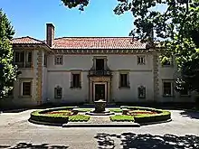 In the wing to the right of the main block of the house was a sunroom and to the left was the service wing that included the kitchen and servants quarters. On the second floor was the Phillip's private quarters containing four family bedrooms, each with a bathroom, dressing room and sleeping porch, and two guest rooms. A staircase located between the receiving hall and dining room accessed the lower floor leading to the Southwestern rooms and to the porte-cochère. In 1938, the Phillips donated Villa Philbrook and its surrounding gardens to the city of Tulsa, in hopes that the estate would be used for art and cultural purposes.[2] While the principal rooms on the first floor were left virtually untouched, the rest of the space has been remodeled for its use as a public institution.