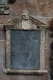 On 11 April 1635 a licence was granted by Henry Smythe, Vice-chancellor of the University of Cambridge to the Masters and Fellows of all colleges at Cambridge to bestow such charitable benevolence on Holland as they should see fit, considering his learning and his financial need.[3][7] In 1636 he was already bedridden. He died at Coventry on 9 February 1637 and was buried at Holy Trinity Church, where he is remembered in an epitaph of his own composition, lamenting the deaths of the six sons who had predeceased him.[7] Holland's wife, Anne, who died in 1627 at the age of 72, is also buried in the church, where there is a Latin epitaph to her composed by her son, Henry.[3]