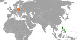 Philippines–Poland relations are the bilateral relations between the Republic of the Philippines and the Republic of Poland. Formal diplomatic relations between the two countries were established on September 22, 1973,[1] but contact between the two peoples dates back to the seventeenth century.[2]