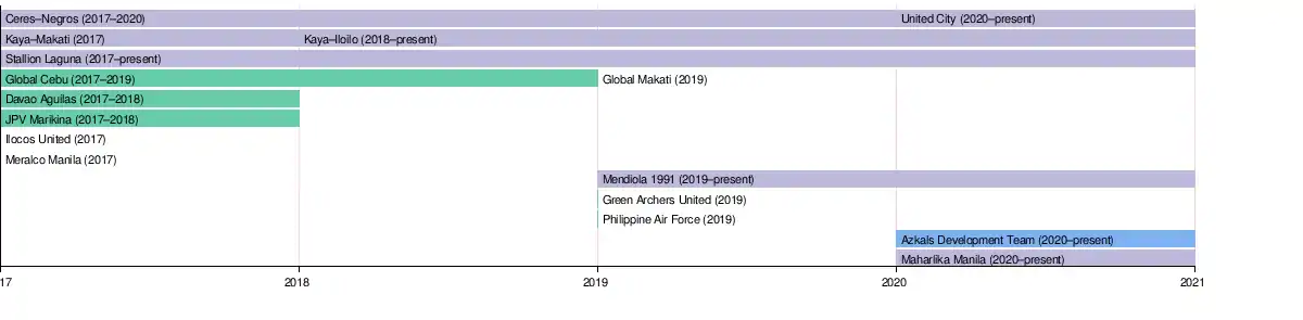 The most recent expansion team is Cebu F.C., which will make their debut in the upcoming 2021 season.[47]