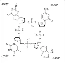 In 1905, Levene was appointed as head of the biochemical laboratory at the Rockefeller Institute of Medical Research. He spent the rest of his career at this institute, and it was there that he identified the components of DNA. In 1909, Levene and Walter Jacobs in 1909 recognised d-ribose as a natural product and an essential component of nucleic acids.[1][2][3] They also recognised that the unnatural sugar that Emil Fischer and Oscar Piloty had reported in 1891[4] was the enantiomer of d-ribose.[3] Levene went on to discover deoxyribose in 1929.[5] Not only did Levene identify the components of DNA, he also showed that the components were linked together in the order phosphate-sugar-base to form units. He called each of these units a nucleotide, and stated that the DNA molecule consisted of a string of nucleotide units linked together through the phosphate groups, which are the 'backbone' of the molecule. His ideas about the structure of DNA were wrong; he thought there were only four nucleotides per molecule. He even declared that it could not store the genetic code because it was chemically far too simple. However, his work was a key basis for the later work that determined the structure of DNA. Levene published over 700 original papers and articles on biochemical structures. Levene died in 1940, before the true significance of DNA became clear.