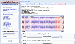 phpLiteAdmin is an open-source tool written in PHP intended to handle the administration of SQLite over the World Wide Web. Its feature set, interface, and overall user experience is comparable to that of phpMyAdmin for MySQL. In the same way that SQLite is a flat file database, phpLiteAdmin is distributed in the form of a single PHP file (currently approx. 200 KiB in size). Its ease of installation, portability, and small size go hand in hand with SQLite.