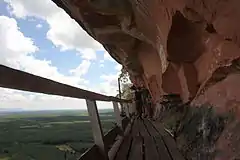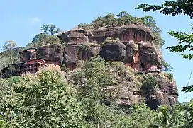 Phu Thok has two peaks, Phu Thok Yai and Phu Thok Noi.[3] Wat Phu Thok, an important Buddhist temple, is in a cave near the top of the smaller peak.[4] The summit of this massive rocky hill can be reached via a wooden walkway. The top has views of the surrounding flat countryside.[5]