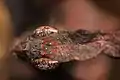 Phyllocrania paradoxa is camouflaged so as to appear as dead, dried-up leaf material.[5] It has an elongated head, a flattened, extended prothorax and leaf-like protrusions from its limbs.[5] The mantis also has a forewing that looks like a desiccated leaf,[1] and the "creases" in the wings are actually shadings of pigment.[4] In the wild, the ghost praying mantis effectively blends in against dead leaves. Predators such as birds tend to overlook insects that resemble their background, and by staying still the ghost praying mantis can go unnoticed.[6]