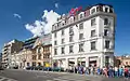 The square features a large Christmas tree erected every December.