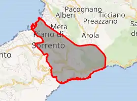 Piano di Sorrento (Neapolitan: Caruotto) is a comune (municipality) in the Metropolitan City of Naples in the Italian region Campania, located about 25 km (16 mi) southeast of Naples. Piano di Sorrento borders the following municipalities: Meta, Sant'Agnello, Vico Equense.