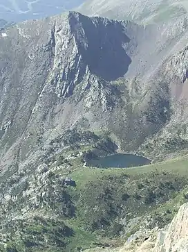 ![]() Pic del Aspres, Estany de les Truites and Refugi de Coma Pedrosa. | |