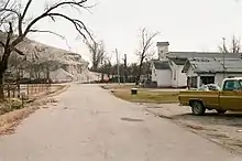 ![]() A view looking north along Connell Ave, which was the main business district, 2007. The Picher Water Tower stands in the background. | |