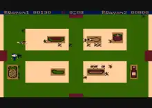 Playing as "George" the player attempts to protect their picnic from ants, who will carry off the food, spiders, who will weave webs to slow George down or bite, and wasps, who will sting to paralyze. While fending off the insects the player must move the food back on to the tables. Points are gained for food still visible on the screen at the end of each round.[3] Each round lasts 90 seconds. There are sixteen rounds in a game. If all the food is pushed off the screen the game ends.