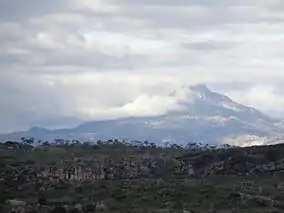 The Pico do Itambé State Park is divided between the municipalities of Santo Antônio do Itambé, Serro and Serra Azul de Minas in Minas Gerais. It has an area of 4,696 hectares (11,600 acres).[1][lower-alpha 1] It is 357 kilometres (222 mi) from Belo Horizonte. The word "Itambé" is of indigenous origin and means "sharp stone".[3] The park protects the Serra do Espinhaço, a mountain range.[4] The highest peak is the 2,002 metres (6,568 ft) Pico do Itambé, a major landmark of the state. It contains various springs and headwaters of the Jequitinhonha and Doce rivers.[1]