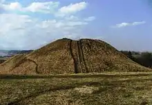 Archaeological excavations show that people lived on and around the hill fort long before the Teutonic crusade. A burial ground from the 7th century is located about 500 m (1,600 ft) southeast of the hill; it was excavated in the 1980s.[2] At the foot of the hill, towards east and west, there was a settlement from the beginning of the 1st millennium CE to the beginning of the 2nd millennium that covers an area of about 1.5 hectares (3.7 acres).[2]