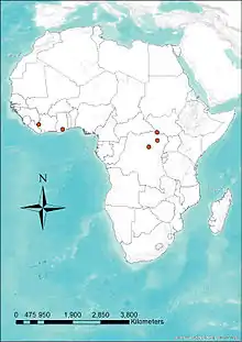 It is found in the Democratic Republic of the Congo, Ivory Coast, Ghana, Equatorial Guinea and South Sudan.[4]
