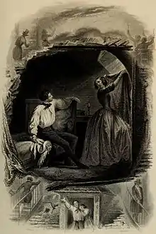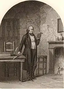 After spending some time in Laisnez's printing-office, he was called to Paris, in 1796, to serve as an assistant in his father's business. In 1798, the firm went bankrupt, and Beranger found himself in straitened circumstances, though he now had more time to compose verse. Poems such as "Le Grenier" (The Garret)[6][7] and "Mon Habit" (My Coat)[8] belong to this period. He did literary hackwork, and wrote pastorals, epics and other works. However, by the end of 1803, Béranger was in direst poverty and poor health. His wardrobe consisted of one pair of boots, one greatcoat, one pair of trousers with a hole in the knee, and "three bad shirts which a friendly hand wearied itself in endeavouring to mend." The friendly hand was that of Judith Frere, whom he had known since 1796, and who continued to be his faithful companion until her death, three months before his own. She was not the Lisette referred to in his songs,[9] but was the inspiration behind La Bonne Vieille[10] and Maudit printemps.[11]