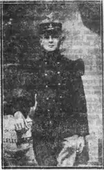 Lagrée was frequently made fun of by his workmates, which, coupled with his distaste for the job, caused him to eventually hitch a boat to the coast. After working on two other ships for the next few months, Lagrée got tired of sailing and caught a train for Buffalo, New York, where he started work as a hotel porter. After earning a decent salary, he moved to Cincinnati, Ohio for a short period, before finally settling to work as a farm hand in Arcade.[3] Around this time, the First World War broke out, and Lagrée's mother started sending him numerous letters, begging him to return home and fight for the homeland. Lagrée begrudgingly accepted and returned to Quessoy, where the locals nicknamed him "L'Américain" (literally The American) due to his fashion style and American accent. He was enlisted as an infantryman at the 1st Colonial Infantry Division, and was considered an honorable soldier by his commander.[4] Despite this, Lagrée was dissatisfied with army life and his meager 35 franc salary, causing him to resort to asking his mother for more money. After she refused, he decided to resort back to stealing, and if need be, kill anyone who stood in his way.[5]