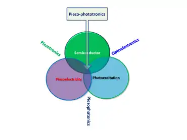 Piezotronics effect is using the piezoelectric potential (piezopotential) created in materials with piezoelectricity as a “gate” voltage to tune/control the charge carrier transport properties for fabricating new devices. Neil A Downie showed how simple it was to build simple demonstrations on a macro-scale using a sandwich of piezoelectric material and carbon piezoresistive material to make an FET-like amplifying device and put it in a book of science projects for students in 2006.[1] The fundamental principle of piezotronics was introduced by Prof. Zhong Lin Wang at Georgia Institute of Technology in 2007.[2] A series of electronic devices have been demonstrated based on this effect, including piezopotential gated field-effect transistor,[3] piezopotential gated diode,[4] strain sensors,[5] force/flow sensors,[6] hybrid field-effect transistor,[7] piezotronic logic gates,[8] electromechanical memories,[9] etc. Piezotronic devices are regarded as a new semiconductor-device category. Piezotronics is likely to have important applications in sensor, human-silicon technology interfacing, MEMS, nanorobotics and active flexible electronics.