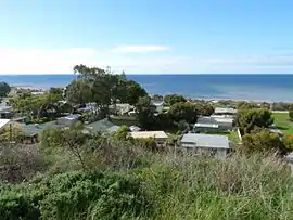 Pine Point (formerly Muloowurtie) is a locality in the Australian state of South Australia on the east side of Yorke Peninsula adjacent to Gulf St Vincent. It was surveyed as a government town in 1883 and proclaimed under the name of Muloowurtie on 24 January 1884.[1] The name was changed to Pine Point in 1940. The boundaries of the locality were created in May 1999 in respect to the "long established name" and includes both "the Pine Point Shack Site" and " the Government Town of Pine Point."[2][6]