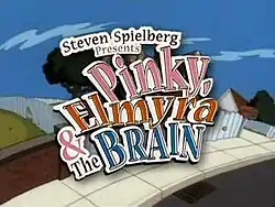 Pinky, Elmyra & the Brain is the retooling of the American animated television series Pinky and the Brain (itself being a spin-off from Animaniacs), with the title characters being joined by Elmyra Duff from Tiny Toon Adventures.[1] The show was executive produced by Steven Spielberg and the series was produced by Amblin Entertainment in association with Warner Bros. Animation, and aired from 1998 to 1999 on Kids' WB, running for 13 episodes. This show would be Spielberg's final collaborative effort with Warner Bros. Animation until the 2020 revival of Animaniacs.