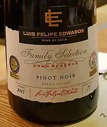 Pinot noir (French: [pino nwaʁ]) is a red wine grape variety of the species Vitis vinifera. The name may also refer to wines created predominantly from Pinot noir grapes. The name is derived from the French words for pine and black. The word pine alludes to the grape variety having tightly clustered, pine cone-shaped bunches of fruit.[1]