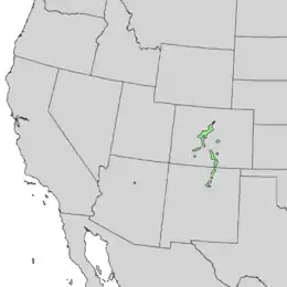 Pinus aristata, the Rocky Mountain bristlecone pine (or the Colorado bristlecone pine[2]), is a long-living species of bristlecone pine tree native to the United States. It appears in the Rocky Mountains in Colorado and northern New Mexico, with isolated populations in the San Francisco Peaks in Arizona and the Kaibab National Forest north of the Grand Canyon. It is usually found at very high altitudes, from 7,000–13,000 feet (2,100–4,000 m),[3] in cold, dry subalpine climate conditions, often at the tree line, although it also forms extensive closed-canopy stands at somewhat lower elevations.