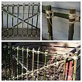 - Floor lashing: Secures poles lying down in a straight line to form a deck or a "floor"