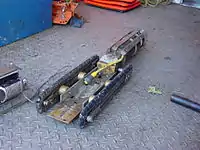 A run to be inspected will either start from an access pipe leading at an angle down to the sewer and then run downstream to a manhole, or will run between manholes. The service truck is parked above the access point of the pipe. The camera tractor, with a flexible cable attached to the rear, is then lowered into the pipeline. The tractor is moved forward so that it is barely inside of the pipeline. A "down-hole roller" is set up between the camera tractor and the cable reel in the service truck, preventing cable damage from rubbing the top of the pipeline. The operator then retires to the inside of the truck and begins the inspection, remotely operating the camera tractor from the truck. When the inspection is complete or the camera cable is fully extended, the camera tractor is put in reverse gear and the cable is wound up simultaneously. When the camera tractor is near the original access point, the downhole roller is pulled up and the camera tractor is moved into the access point and pulled up to the service truck. A tractor may be used to inspect a complete blockage or collapse that would prevent using a fish and rope as described below.