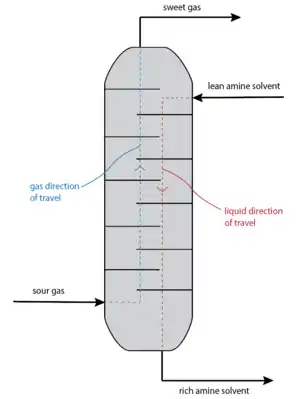 Piperazine's solubility is low, so it is often used in relatively small amounts to supplement another amine solvent. One or more of piperazine's performance advantages are often compromised in practice due to its low concentration; nonetheless, the CO2 absorption rate, heat of absorption, and solvent capacity are increased through the addition of piperazine to amine gas treating solvents, the most common of which is MDEA due to its unmatched high rate and capacity efficiency. For example, a 5 m PZ/5 m MDEA blend yields an 11% larger difference in CO2 concentration than 8 m PZ between the lean (inlet absorbent) and rich (outlet absorbent) amine solvent streams, or in other words, more CO2 is removed from the sour (flue) gas stream per unit mass of solvent, and an almost 100% larger concentration difference than 7 m MEA.[9]