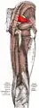 ![]() Muscles of the gluteal and posterior femoral regions seen from the front. | |