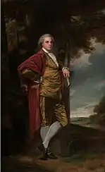 This agreement shows how the right of other manors developed out of the original manorial powers of John, Lord Robert Lisle's son, kept 12 acres (49,000 m2) of underwood from the land called Vodeleye; the park of Gedelesho and Gedelesho Wood (Gilston) and its keeper are mentioned, so presumably this was the manorial park. That the estate had some boundary fence or bank marking it off from neighbouring land is suggested by a reference to a house, on the left hand side within the second gare, which contained two chambres for habitation. Some idea of the size of Pishiobury estate emerges from the long lease which Richard le Scrope, 1st Baron Scrope of Bolton, granted to John Chauncy in 1400. The property then consisted of 319½ acres of arable, 58 acres (230,000 m2) of pasture and 36 acres (150,000 m2) of meadow - houses and an orchard. In 1534, Lord Scrope, sold the manor to Henry VIII of England who granted it to Queen Anne Boleyn; an extend made at this time once again describes the estate. The perimeter of the park was nearly two miles; it was well wooded with game, deer and rabbits, and there was a lodge on one side for the keeper: could this have been the house within the second gate of 1343? There was a moated house within the park with stabling for twenty horses. The house was described as "somewhat fallen into decay"; it was replaced in 1585 by a new house built by Sir Walter Mildmay. Chauncy described it as a "very neat and fair Pile of building for the Manor-house, upon a rising Ground in the Vale near the River Stort, lately converted into a Paddock for Deer, adorned in the Front thereof with a fair Bowling Green, raised about five Foot high, enclosed with a Brick Wall top with stone, and balls upon it, and two fair walks planted with trees; each walk extending about four Furlongs in length from the house to the road; where it is observable that there is no dust in summer, nor no dirt winter, a clear description of the setting of an Elizabethan house in its ground. The estate passed from the Gardiner family on the marriage of Rose Gardiner (1757-1835) (whose memorial tablet exists in St Mary's Church, Sawbridgeworth), daughter and heiress of Edward Gardiner (d.1779) of Pishiobury, to Jeremiah III Milles (1751-1797), son of Rev. Jeremiah II Milles (d.1784), Dean of Exeter.[3] The house was remodelled or rebuilt by Jeremiah III Milles to the designs of James Wyatt in 1782–84. It was then illustrated in John Preston Neale's Views of Seats of 1821.[4]