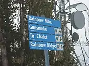 Non-standard symbols for standard ratings may be encountered at some ski areas. Bogus Basin, a resort near Boise, Idaho, uses orange diamonds on trailhead signs considered to be more difficult than double black diamonds; however, those trails are indicated on the trail map as double black diamonds.[4] Jiminy Peak, MA uses two variations of normal trail ratings; one is a blue square with a green circle inside of it used to represent an easy-intermediate trail. The other is a blue square with a single black diamond in it, used to represent an intermediate-hard trail. |