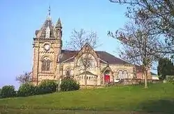 A disastrous fire gutted Moulin Kirk in 1873 and, in addition to restoring this building, a new church was erected on a site in Pitlochry offered by Mr Archibald Butter of Faskally. The new church, designed by Dundee Architects Charles & Leslie Ower was complete by 1884, comprising a mixture of Romanesque Architecture and Victorian Gothic and Byzantine features, inspired by the work of F T Pilkington.[1] A monument commemorating Alexander Duff (1806–1878), the first Church of Scotland missionary to India, is situated in the church grounds. A church hall was constructed in 1910.[2]